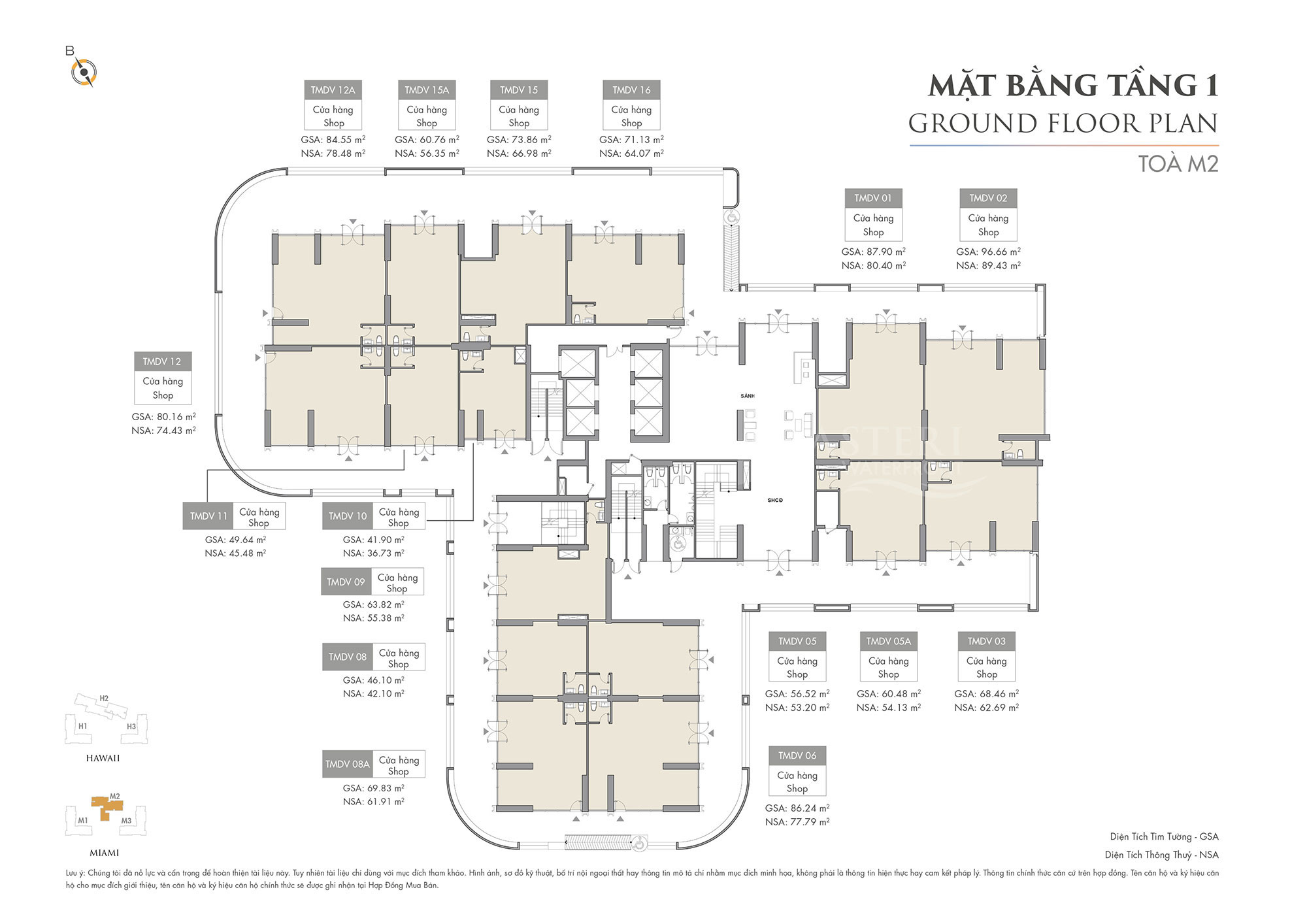 Tòa M2 nằm bên trong vùng lõi phân khu Miami. Tòa tháp sở hữu lợi thế lớn khi nằm gần 2 trục đường Hải Đăng & đại lộ 52 m, là những trục giao thông huyết mạch của khu đô thị Vinhomes Ocean Park, nên kết nối giao thông nội – ngoại khu rất tiện lợi. Ngoài ra, tòa M2 còn nằm kế bên công viên Botanic Garden, shop thương mại dịch vụ Malibu Walk và đặc biệt chỉ cách hồ Ngọc Trai 24.5 ha chưa đầy 100 m, tương đương 3 – 5 phút đi bộ, nên cư dân nơi đây sẽ được tận hưởng trọn vẹn một cuộc sống đại dương sôi động đẳng cấp ngay giữa lòng “Thành phố biển hồ” Vinhomes Ocean Park.
