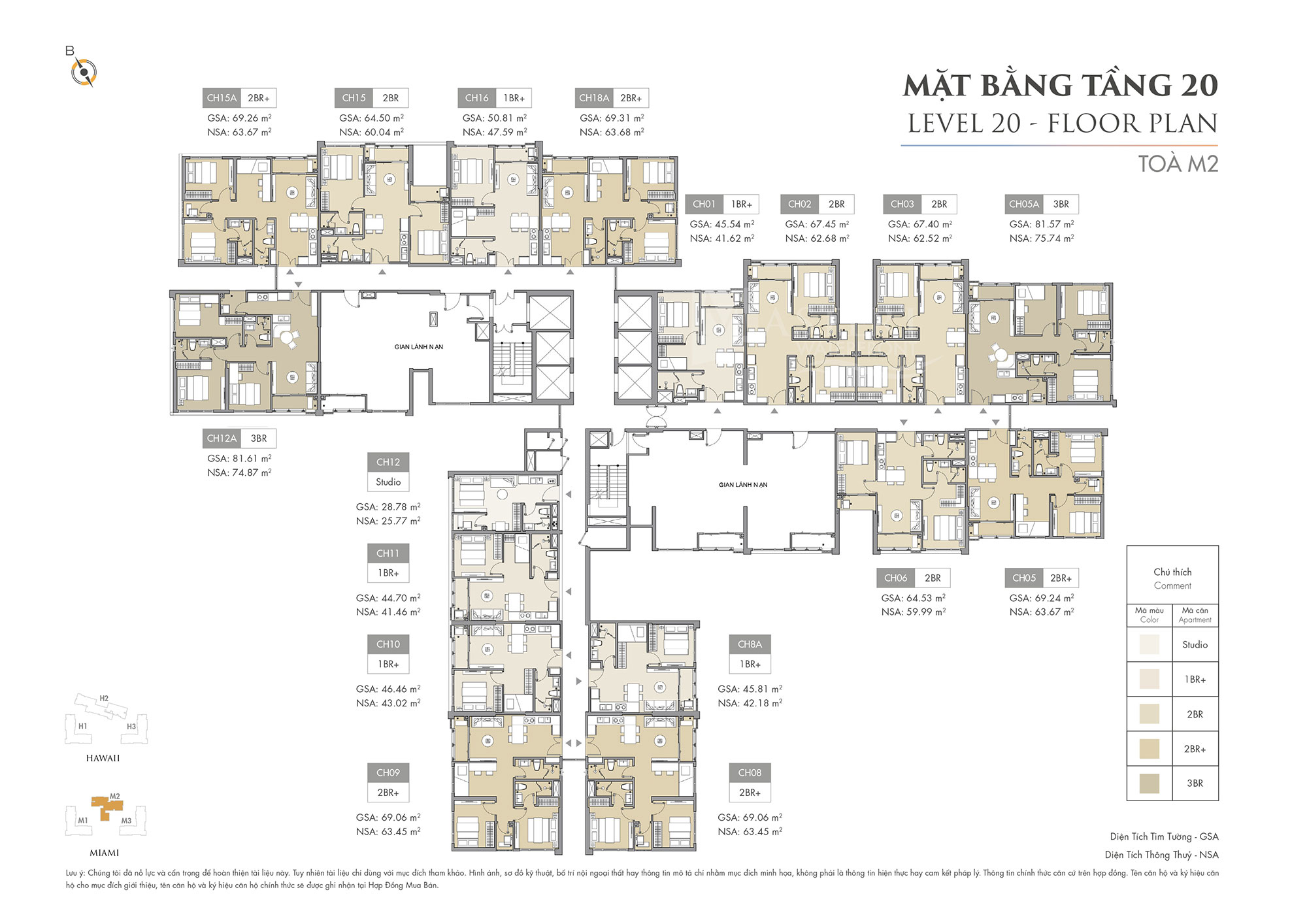 | Căn hộ studio | 25.41 – 27.06 m2 | 1.8 – 2.2 tỷ |